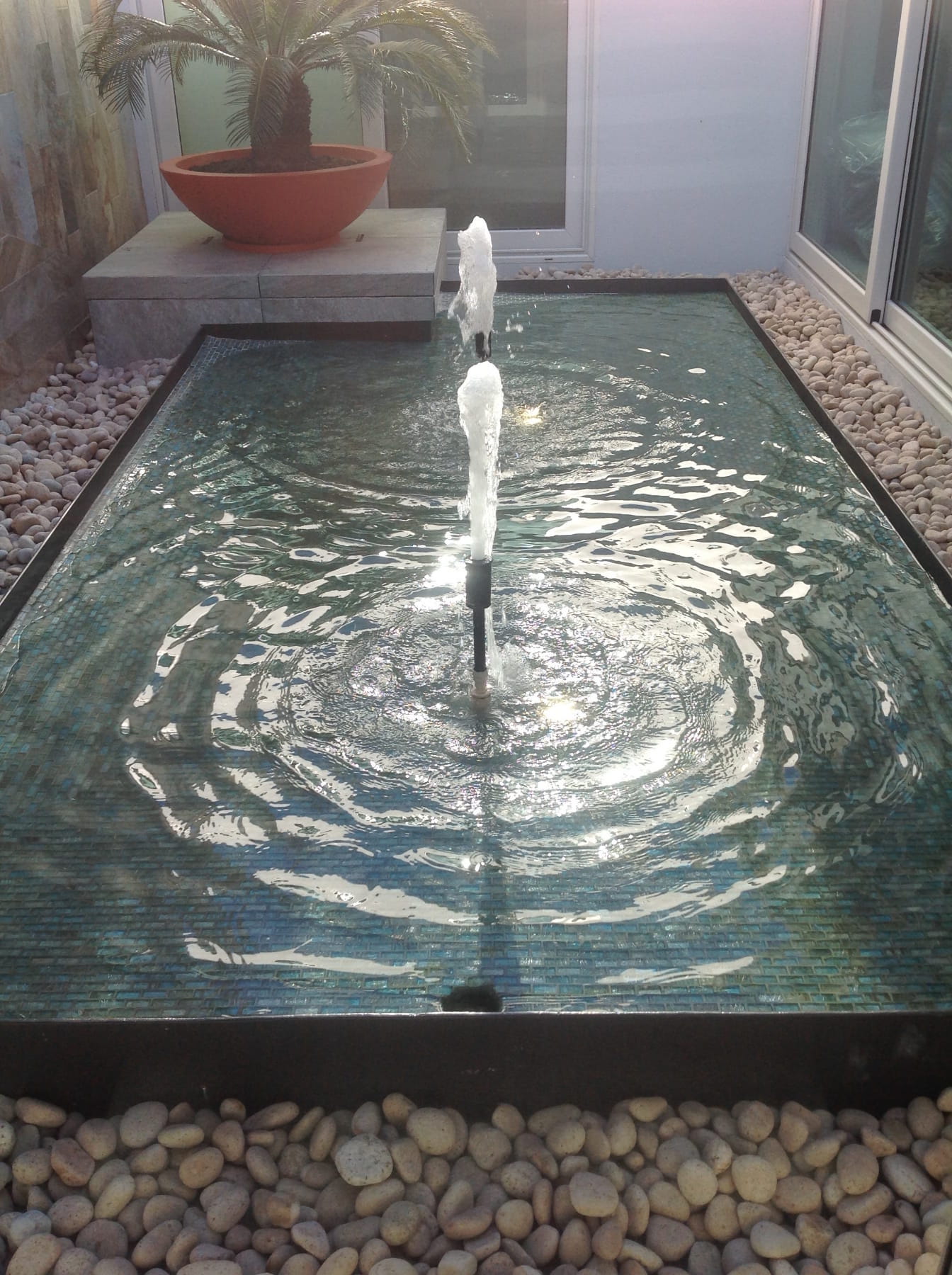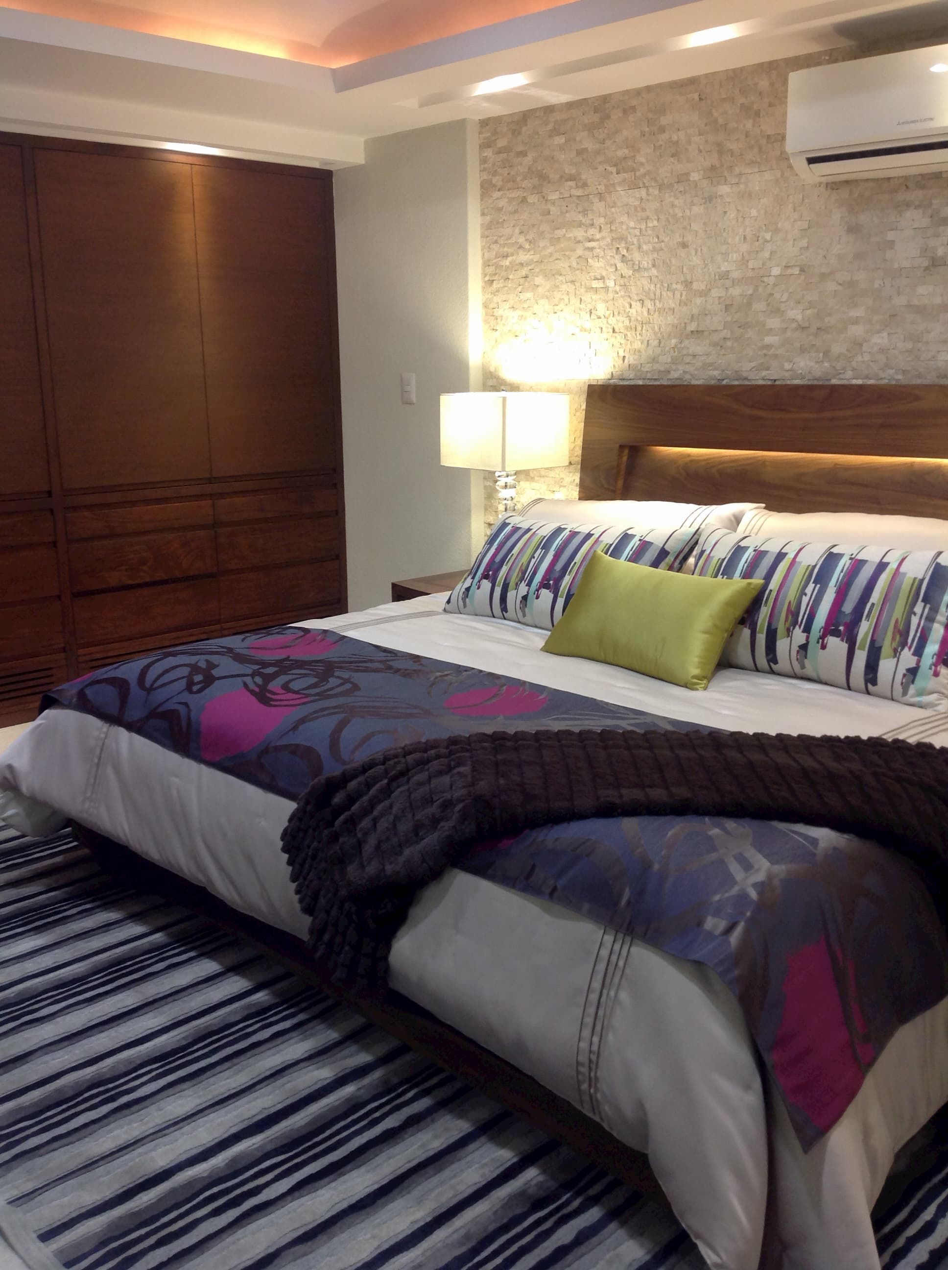 A través de diferentes texturas, jugando con los elementos como la iluminación y el espejo de agua en el patio central, el resultado arquitectónico es una casa de descanso con color y frescura, donde los materiales elegidos contribuyen a dar el toque moderno para disfrutar en familia.