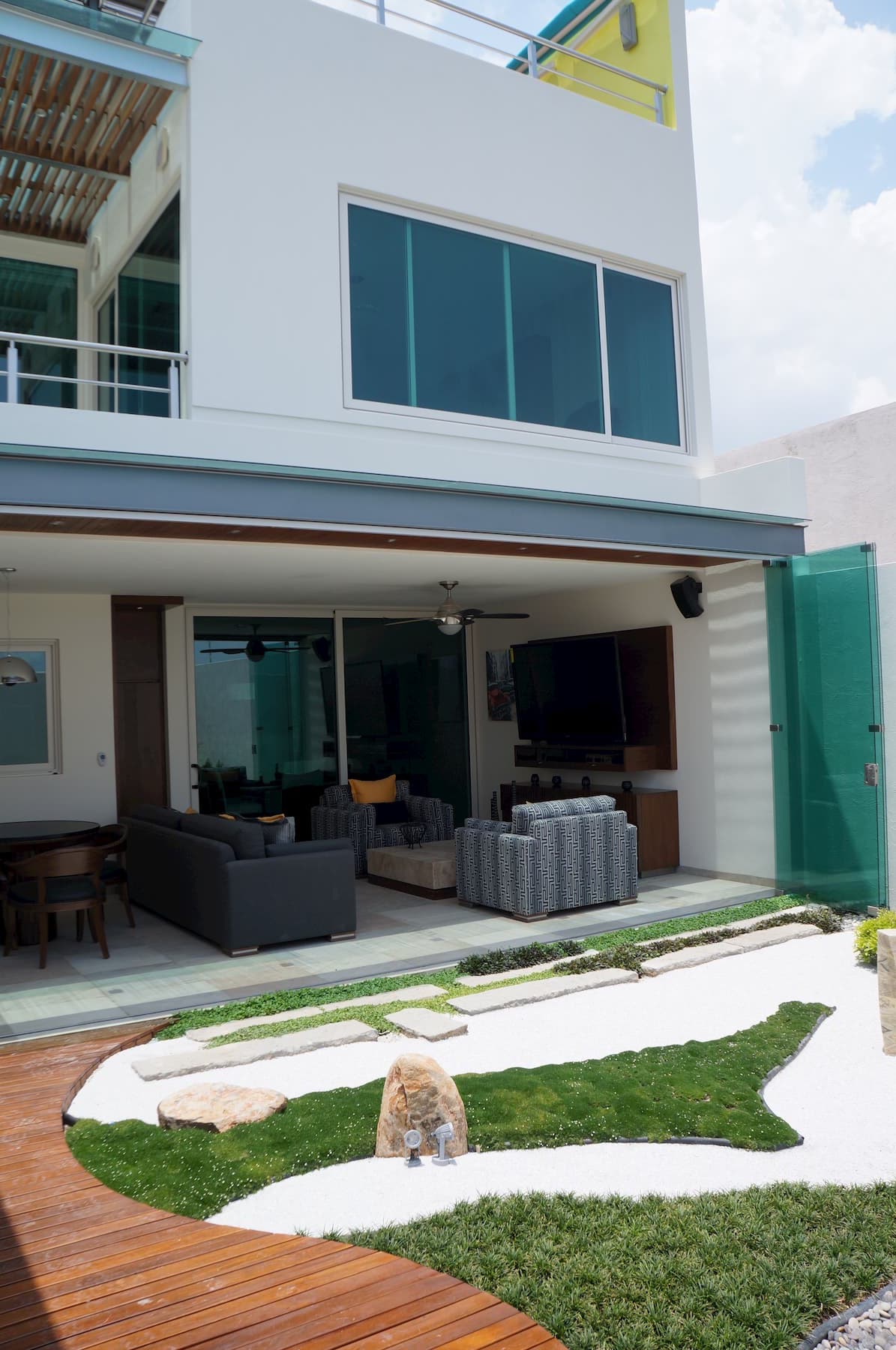 El objetivo de esta residencia fue proyectar una vía a la libertad interior. Con una arquitectura confortable, moderna y sin obstáculos, destaca un jardín Zen que le otorga un carácter místico e invita a disfrutar cada momento en forma natural y espontánea. Con espacios donde predominan las líneas rectas, ningún elemento obstruye la visión ni el paso de la luz natural.