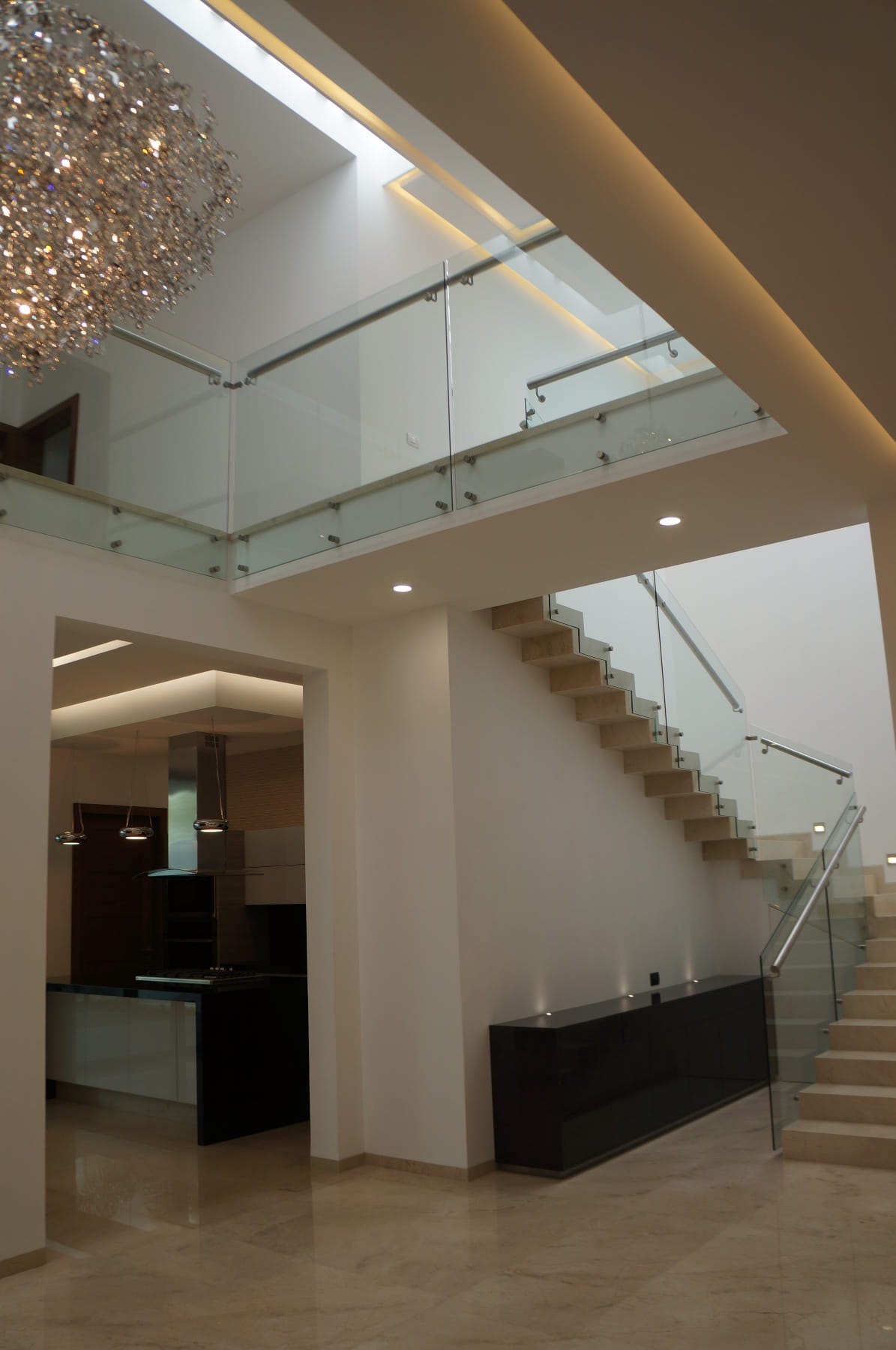 Un hogar de espacios interactivos con detalles particulares que sobresalen inmediatamente a la vista. Los pisos de mármol, detalles en madera y el plafón con pérgolas en la doble altura, permite que la luz natural forme parte de la belleza arquitectónica. La cocina, la sala de estar y el comedor se integran creando una gran área social que le da versatilidad a su función.